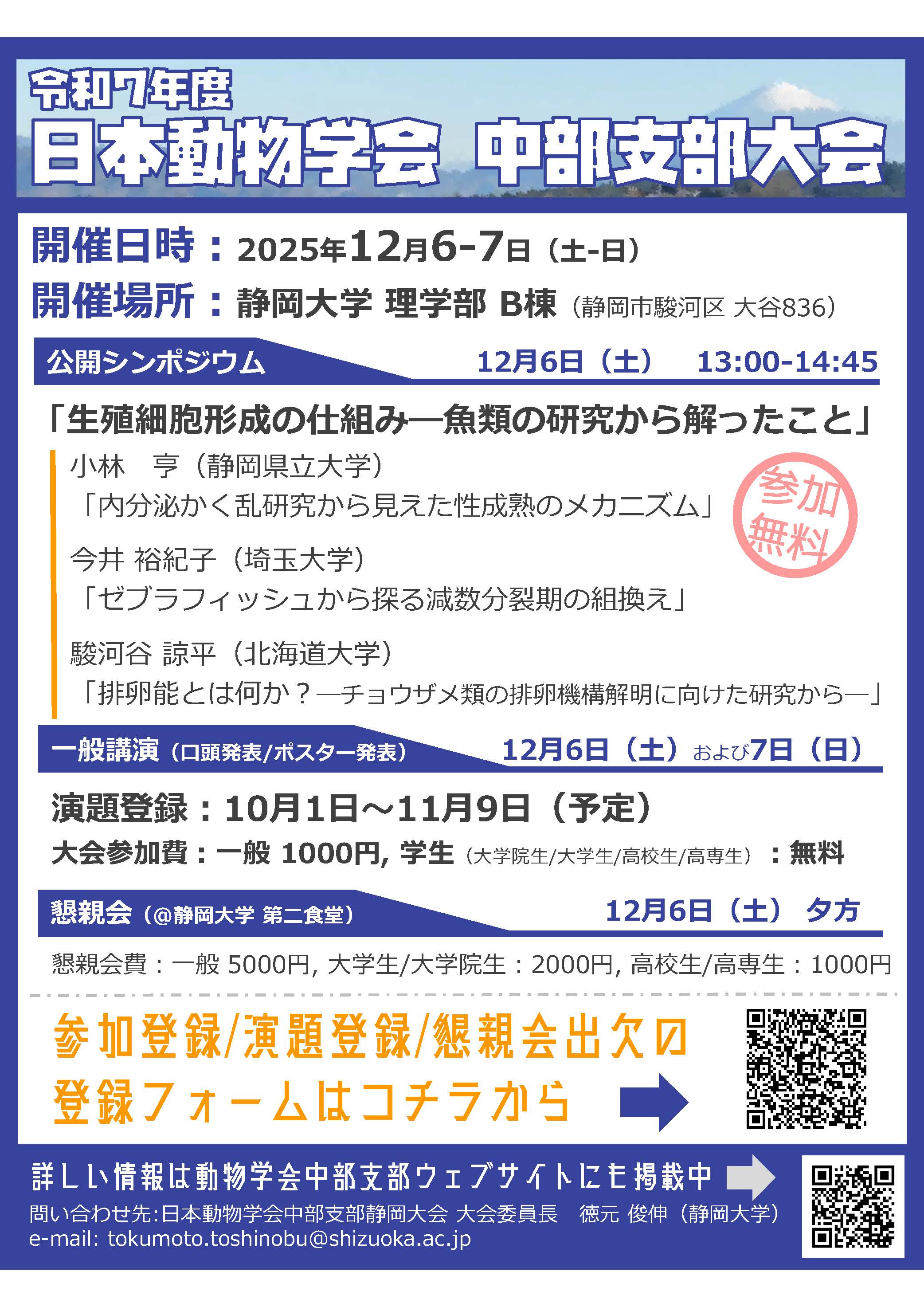 【2025「日本動物学会中部支部大会(静岡)」情報抜粋】