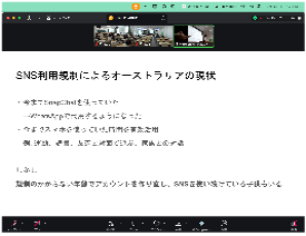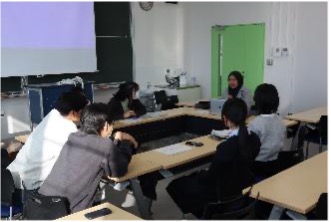 そして、本日の講座の前半では、全受講生、外国人留学生のTA、FSS担当教職員の前でこのスライド資料を使って発表を行いました。講座の後半では、各グループに静岡大学に通う外国人留学生がTAとして加わり、発表内容の再検討と英訳の作業を行いました。