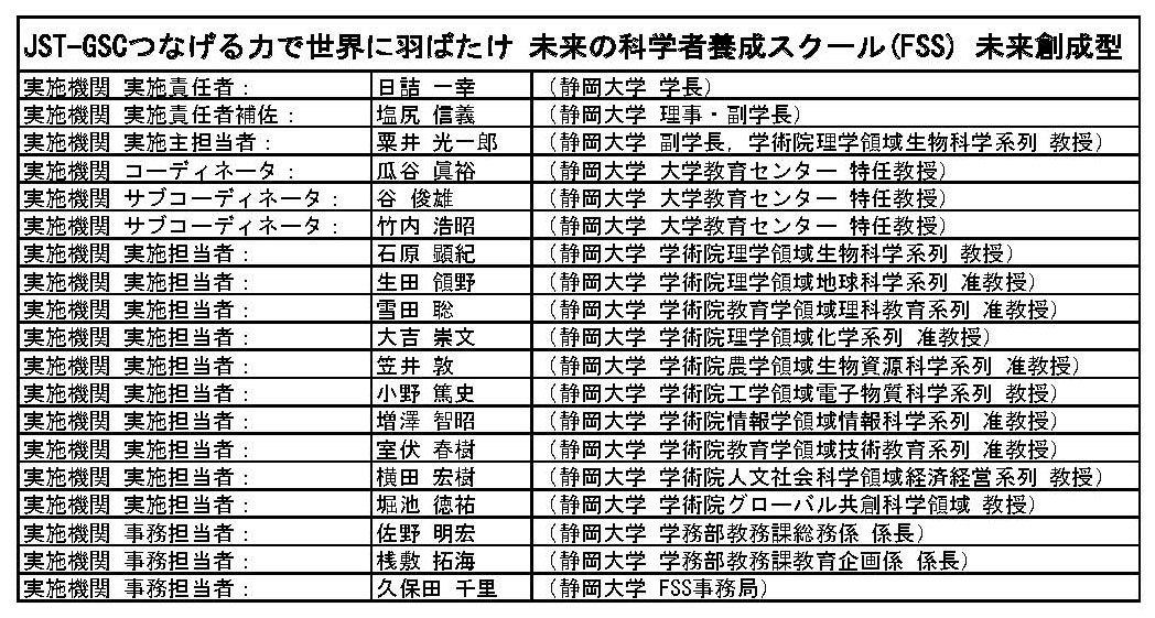 「未来の科学者養成スクール(FSS)」は、国立大学法人静岡大学(https://www.shizuoka.ac.jp/)が運営しています。